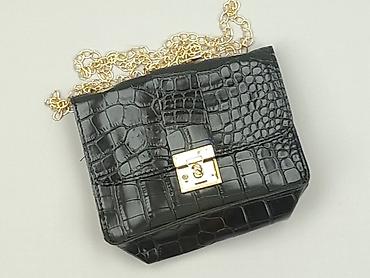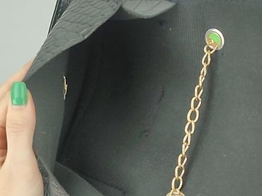 Mała damska torebka na łańcuszku - Kolor: czarny, wysoki połysk - Faktura: tłoczenie imitujące skórę krokodyla - Materiał: skóra ekologiczna/lakierowana (na połysk) - Okucia: srebrny łańcuszek na ...Typ: