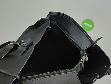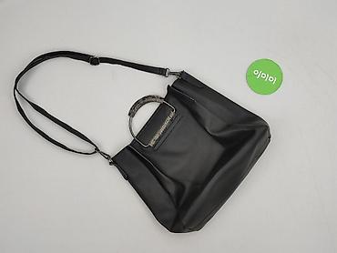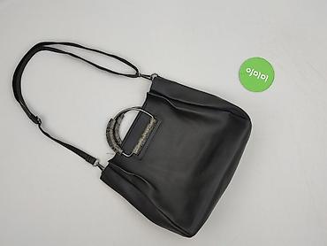 Czarna damska torebka na ramię - Klasyczny, minimalistyczny fason z prostokątną metalową wstawką z przodu - Dwa cienkie paski do noszenia na ramieniu - Zapięcie: zewnętrzna klapka na nap, wewnętrz...