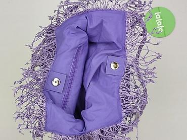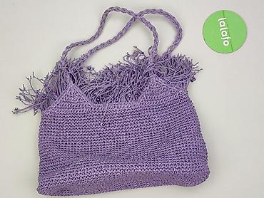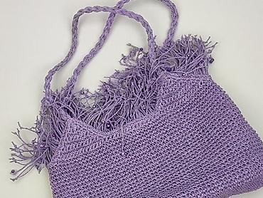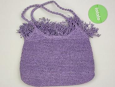 Torebka damska, szydełkowana, fioletowo–kremowa - Kształt: podłużna/ovale, miękka konstrukcja - Materiał: ręcznie szydełkowana przędza (fioletowy korpus, kremowe boki, rączki i detale) - Zapięcie:...