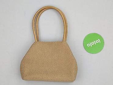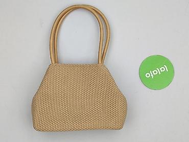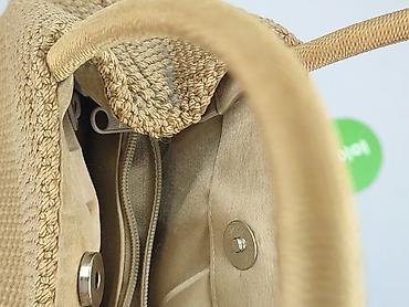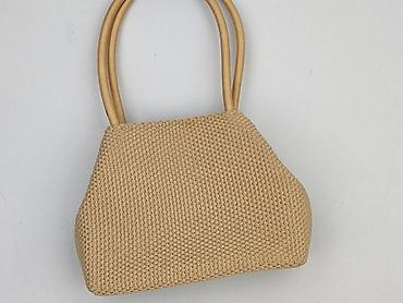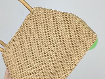 Torebka damska w kolorze beżowym, pleciona, o trapezowym kształcie.