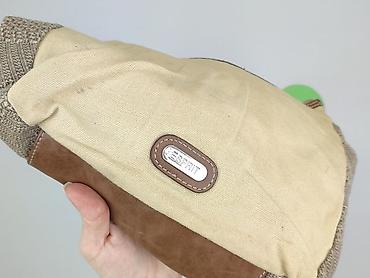 - Materiały: mocne płótno/kanafas, wstawki z tkaniny o plecionym splocie po bokach, dół oraz detale z brązowej ekoskóry; metalowe logo Esprit z przodu