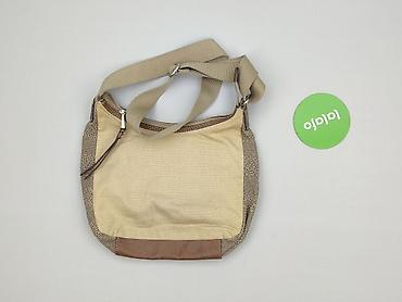 Torebka damska na ramię/listonoszka w odcieniach beżu i taupe. - Materiał: tkanina z połyskiem z geometrycznym wzorem (kółka i kwadraty) + wykończenia z lakierowanej ekoskóry w kolorze taupe - Pas...