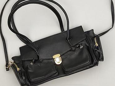 Torebka damska na ramię/crossbody, kolor czarny - Materiał: skóra ekologiczna o gładkim, lekko połyskującym wykończeniu - Format: prostokątny, usztywniany dół z metalowymi stopkami - Pasek: długi ...