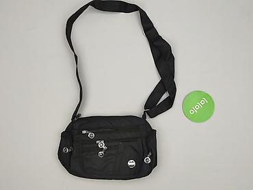 Torebka damska typu crossbody - Kolor: czarny - Materiał: lekka, wytrzymała tkanina (syntetyk) o satynowym wykończeniu - Zapięcie głównej komory: suwak - Kieszenie zewnętrzne: 2 poziome kieszenie ...Stan: