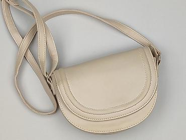 Mała torebka damska typu baguette w kolorze beżowym. - Materiał: miękka tkanina z prążkowaną fakturą (sztruksowy efekt), podszewka wewnątrz. - Zapięcie: suwak na górze. - Pasek: krótki, miękki pas...Stan: