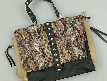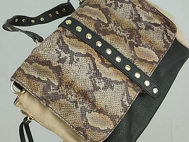 - Styl: miejski/rockowy, klapa z nadrukiem skóry węża, czarny pasek z metalowymi nitami, boki w beżowym zamszowym wykończeniu