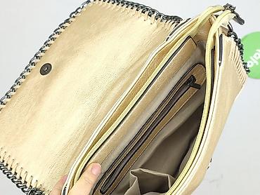Torebka damska na ramię/listonoszka w perłowym, połyskującym odcieniu szampana. - Materiał: syntetyczna skóra o perłowym połysku; klapa z fakturą w stylu skóry węża - Zapięcie: klapa na magnetyczn...