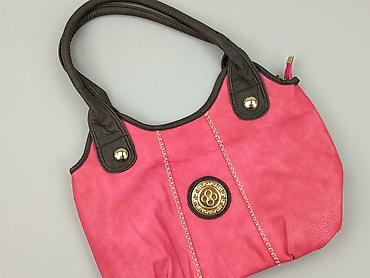 Damska torebka na ramię, kolor różowy z brązowymi elementami