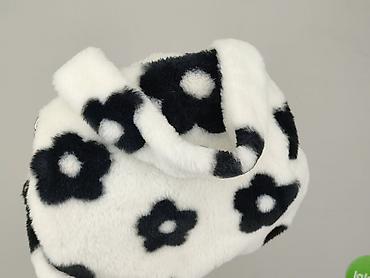 - Materiał: miękki, sztuczny futerko/plusz w kolorze białym z czarnymi kwiatkami