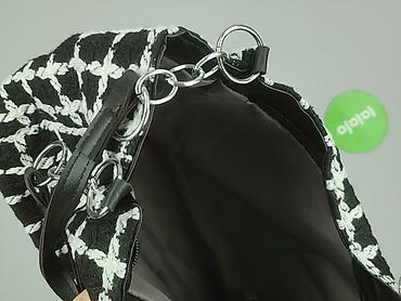 - Uchwyty: podwójne, skórzopodobne paski w kolorze czarnym, połączone z torebką za pomocą ozdobnych, metalowych kółek i łańcuszków w kolorze srebrnym