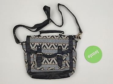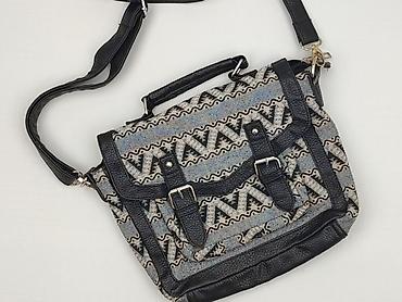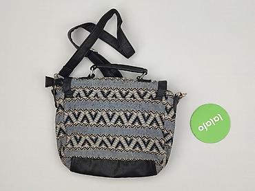 Torebka damska na ramię w czarno‑białą kratę - Materiał zewnętrzny: tkanina o wyraźnej, pętelkowej fakturze z biało-krzyżykowym wzorem na czarnym tle - Uchwyty: podwójne, skórzopodobne paski w kol...