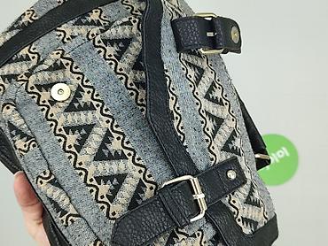 - Materiał: tkanina żakardowa z geometrycznym, etnicznym printem w odcieniach szarości, beżu i czerni; wykończenia z ekoskóry.