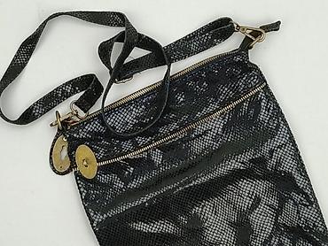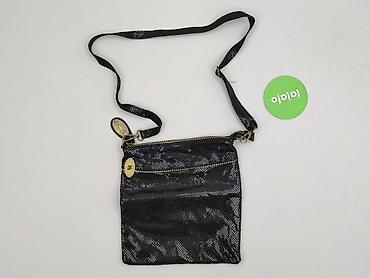 Mała damska torebka na łańcuszku - Kolor: czarny, wysoki połysk - Faktura: tłoczenie imitujące skórę krokodyla - Materiał: skóra ekologiczna/lakierowana (na połysk) - Okucia: srebrny łańcuszek na ...