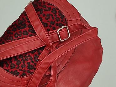 - Kolor: intensywna czerwień; wstawki z materiału w czerwono‑czarny wzór panterki
