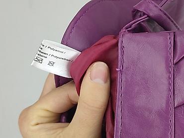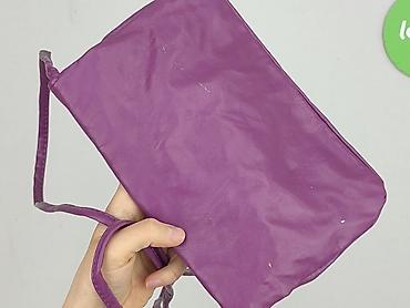 Torebka damska, szydełkowana, fioletowo–kremowa - Kształt: podłużna/ovale, miękka konstrukcja - Materiał: ręcznie szydełkowana przędza (fioletowy korpus, kremowe boki, rączki i detale) - Zapięcie:...