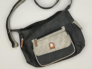 Torebka damska na ramię, pojemna, w kolorze grafitowym z jasnoszarymi wstawkami.