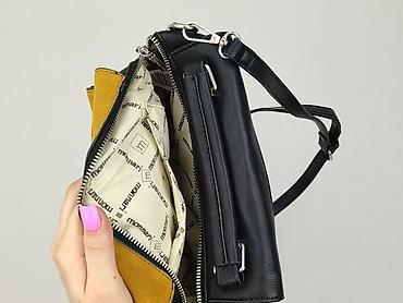 - Materiał: przód z miękkiego zamszu w kolorze musztardowym; boki i tył z czarnej skóry ekologicznej