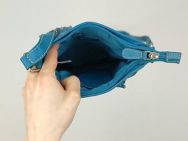 - Pasek: długi, regulowany do noszenia na skos lub na ramieniu, metalowe okucia w kolorze srebrnym