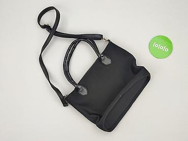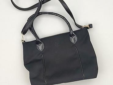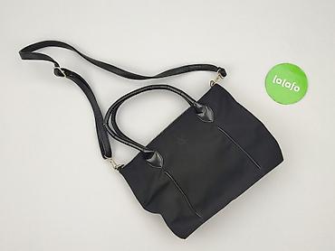 Czarna damska torebka na ramię z tkaniny - Klasyczny, minimalistyczny fason – prostokątna forma z lekko zaokrąglonymi rogami - Materiał: gładka, lekko satynowa tkanina syntetyczna; podszewka w kol...