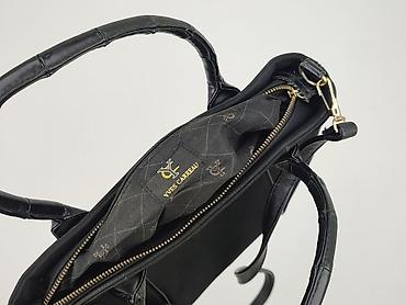 - Materiał: gładka tkanina w kolorze czarnym z wykończeniami z lakierowanej ekoskóry