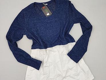 Sukienka/sweter tunikowy DESIGNE R/S dla kobiet, rozmiar 40. - Fason: tunika swetrowa z efektem warstwowym – granatowy korpus z dzianiny połączony z kołnierzykiem koszulowym i mankietami w biało‑n...