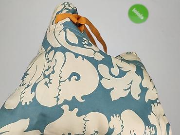 - Wzór: duży, dekoracyjny motyw roślinny na turkusowym tle; kontrastowy pas dole z tkaniny w beżowo‑fioletowy ornament