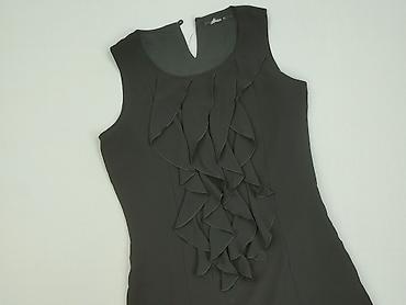 Czarna sukienka damska House, rozmiar XS. - Krój: dopasowany do sylwetki, bez rękawów - Dekolt: okrągły - Przód zdobiony kaskadowymi falbanami, które nadają elegancji i lekkości - Długość: przed k...