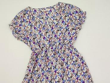 Sukienka damska w kwiaty, rozmiar S/M - Fason: lekka, zwiewna, z falbankami przy rękawach i na dole; delikatnie taliowana, z kopertowym/zakładanym dołem tworzącym subtelne marszczenia - Wzór: gęst...