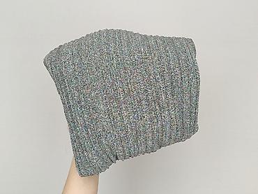 - Struktura i wygląd: prążkowana, lekko metaliczna/połyskująca dzianina w odcieniach szarości z delikatnym, wielokolorowym efektem