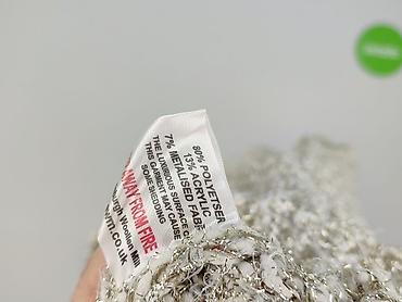 - Dzianina z efektem „bouclé” i srebrną nitką, daje elegancki, zimowy look; metka informuje, że powierzchnia może lekko się mechacić/pylić.