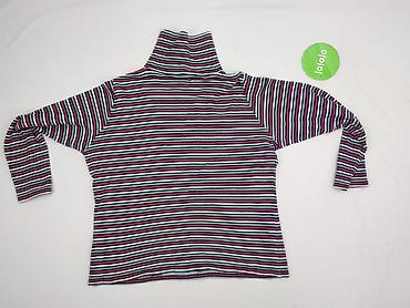 Sweter damski CLOCKHOUSE, rozmiar L - Fason: klasyczny sweter z golfem - Dzianina: gruby, mięsisty splot - Wzór: poziome pasy w odcieniach szarości, czerni i fioletu - Rękawy: długie - Wykończenia...