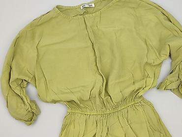 Sukienka damska, oliwkowo‑zielona - Fason: luźna góra z krótkim rękawem typu kimono, w pasie wszyta gumka podkreślająca talię; dół lekko rozkloszowany. - Dekolt: okrągły. - Długość: przed kolano (...