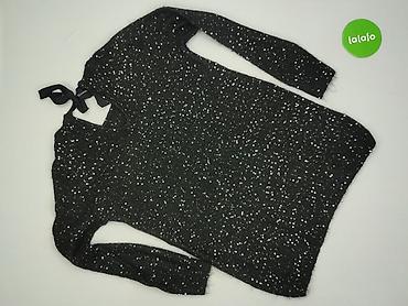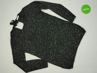 Damski sweter z połyskiem, rozmiar S - Fason: klasyczny pulower z okrągłym dekoltem, długi rękaw. - Kolor: czarny z drobną, granatowo-niebieską nitką dającą delikatny, wieczorowy połysk. - Detale:...