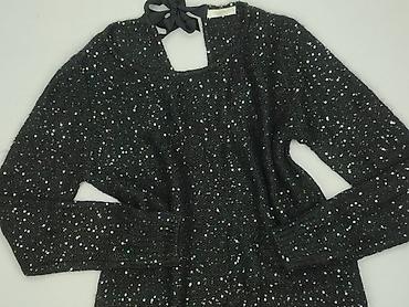 Czarny ażurowy sweter damski Kersh, rozmiar S. - Lekki, siatkowy splot z połyskującymi drobnymi cekinami - Rękawy 3/4 z prążkowanymi mankietami - Asymetryczny dół z prążkowanym ściągaczem - Luźny,...