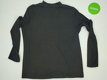 Bluzka damska z długim rękawem, czarna, rozmiar L. - Krój: kopertowy dekolt w kształcie V z delikatnym marszczeniem pod biustem, dopasowana talia. - Rękawy: półprzezroczyste, teksturowane (żakardo...