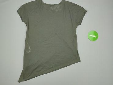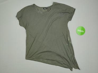 - Fason: luźny T‑shirt z lekko asymetrycznym dołem