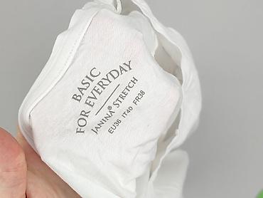 Biała bluzka bez rękawów Janina - Rozmiar z metki: EU 38 (IT 42, FR 40) - Fason: bez rękawów, lekko dopasowana - Dekolt: półokrągły, wykończony delikatną lamówką z kuleczkami - Przód i karczek z a...