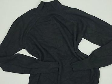 Czarny golf damski, rozmiar M - Krój: dopasowany, prążkowana dzianina - Długość rękawa: długi - Kołnierz: wysoki, miękki golf - Materiał (wg metki): 65% poliester, 32% wiskoza, 3% elastan – elasty...