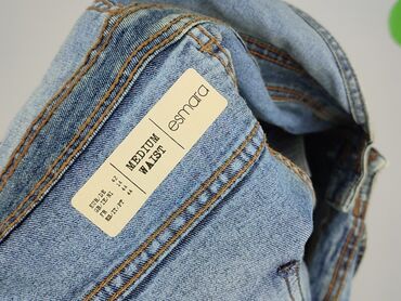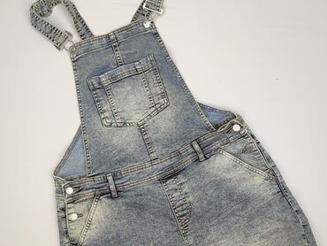 Jeansowa sukienka ogrodniczka Esmara - Materiał: klasyczny denim w kolorze średniego niebieskiego - Krój: ogrodniczka z przodem na szelkach, spódnica przed kolano z postrzępionym dołem - Talia: Me...