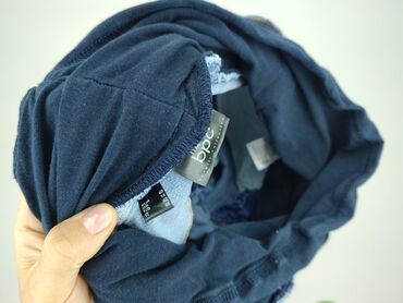 - Pas: wysoki elastyczny panel z miękkiej dzianiny w kolorze granatowym, dopasowuje się do rosnącego brzuszka; szlufki na pasek, zapięcie na guzik i suwak