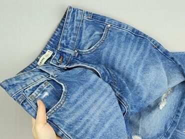 Jeansy damskie CROPP Slim - Fason: slim, zwężane nogawki - Rozmiar z metki: 36 / S - Kolor: klasyczny denim w średnim odcieniu niebieskiego z wyraźnym cieniowaniem - Detale: modne przetarcia i dzi...