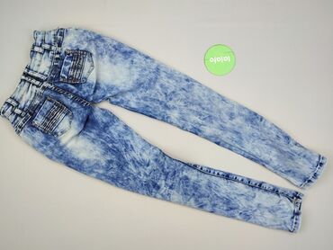 Damskie jeansy skinny, jasny denim - Fason: rurki/skinny, średni stan - Kolor: jasny niebieski z delikatnym cieniowaniem i przetarciami optycznymi na udach - Materiał (metka): 70% bawełna, 27.6% p...