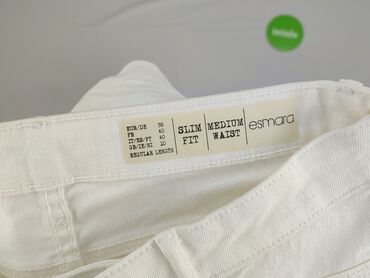 Białe jeansy damskie ESMARA - Krój: slim/zwężane nogawki - Stan: średni - Rozmiar z metki: EU 36 / FR 38 / IT 42 / ES/PT 38 - Skład materiału: 74% bawełna, 24% poliester, 2% elastan – elastyczne i...