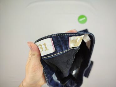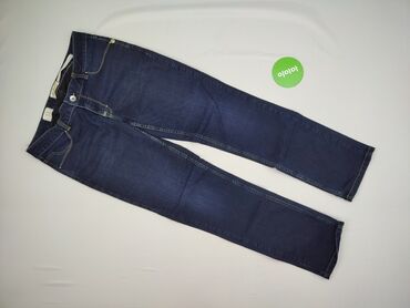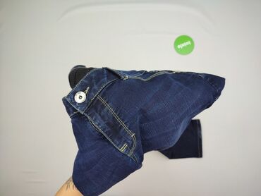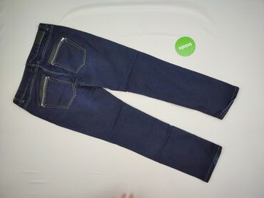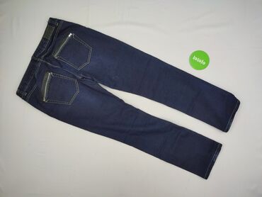 Damskie spodnie jeansowe w kolorze ciemnoniebieskim z połyskiem. - Krój: wąska nogawka (slim), standardowa wysokość stanu - Zapięcie: metalowy guzik + suwak - Kieszenie: 5 kieszeni (trzy z przodu,...