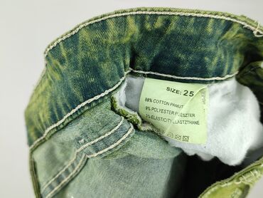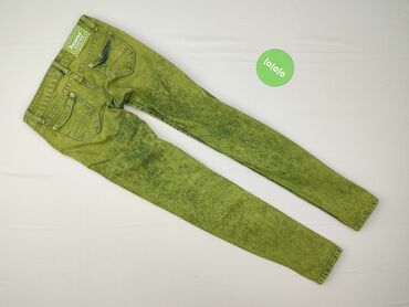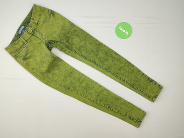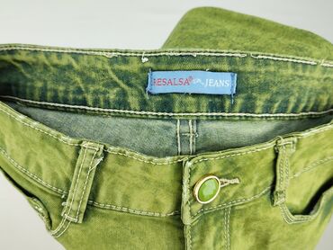Jeansy damskie marki Resalsa Jeans w rozmiarze 25, idealne do codziennych stylizacji. Wykonane z materiału, który zawiera 88% bawełny, 9% poliestru i 3% elastanu, co zapewnia komfort noszenia i dopasowanie do sylwetki. Charakterystyczny zielony kolor z efektem sprania nadaje im unikalny wygląd. Zapięcie na guzik i zamek błyskawiczny. Funkcjonalne kieszenie z przodu i z tyłu.