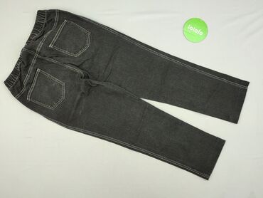 EleganckieCiemnoszare jeansy damskie z gumką w pasie, wykonane z denimu. Spodnie posiadają dwie kieszenie z przodu i dwie z tyłu, wszystkie wykończone białymi szwami. Elastyczny pas zapewnia komfort noszenia i łatwe dopasowanie. Klasyczny fason i neutralny kolor sprawiają, że są odpowiednie do wielu codziennych stylizacji.