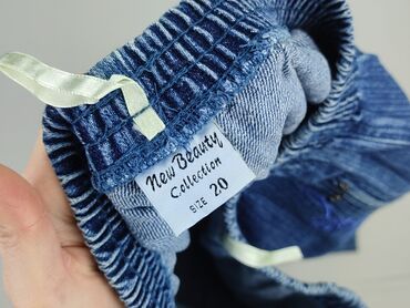EleganckieDamskie jeansy w niebieskim kolorze, wykonane z materiału przypominającego dżins, z delikatnym wzorem. Spodnie posiadają elastyczną talię dla lepszego dopasowania i komfortu noszenia. Z przodu umieszczono dwie kieszenie zapinane na zamki błyskawiczne, ozdobione haftem w kształcie gwiazdek lub kwiatów. Nogawki są proste, co zapewnia klasyczny wygląd. Idealne na co dzień, zapewniając swobodę ruchów.Charakterystyka:Marka: New Beauty CollectionRozmiar: 20Typ: JeansyDopasowanie: RegularneZapięcie: Elastyczny pasKieszenie: Dwie przednie na zamekWzór: Haftowane kwiaty/gwiazdkiWysokość w pasie: WysokiStan: UżywanyKolor: NiebieskiTyp tkaniny: JeansMateriał: BawełnaPrzeznaczenie: Na co dzieńFason: Proste nogawkiStyl: CasualSezon: CałorocznyPłeć: Kobieta