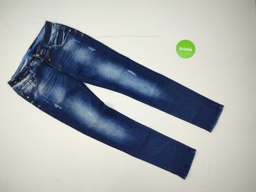 Damskie jeansy MISS RJ, rozmiar 36/S - Krój: slim/skinny, dopasowane nogawki - Kolor: klasyczny niebieski denim z delikatnym cieniowaniem - Stan zapinania: zamek + podwójny guzik - Kieszenie: 5 (t...