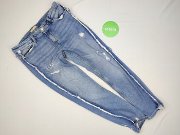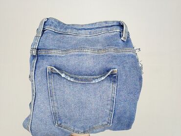 Idealne do codziennych stylizacji streetwear, świetnie wyglądają z T‑shirtem i sneakersami. Marka: CROPP. Rozmiar 40/L. Jasny sprany denim, modne przetarcia i strzępienia przy szwach bocznych.