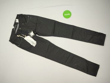 Damskie jeansy „Dress Like You Are Already Famous” – Designed in Italy - Kolor: jasnoszary/srebrzysty denim - Rozmiar z metki: XS - Fason: zwężane nogawki, klasyczny stan - Zapięcie: guzik i zamek...